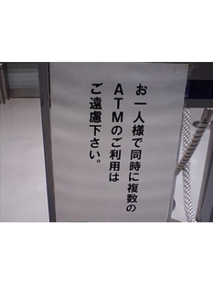 「お一人様で同時に複数のATMのご利用はご遠慮下さい。」